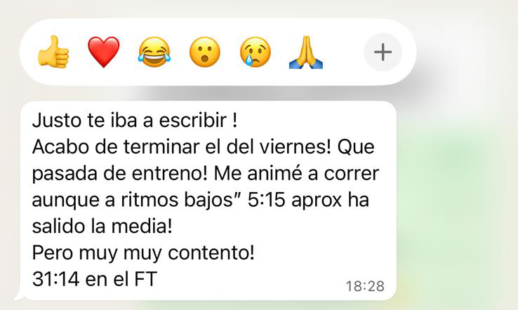 Nos comunicamos directamente por mensaje o llamada semanal. Te entrego tu programación, analizamos resultados, y ajustamos cada semana según tus métricas y sensaciones.